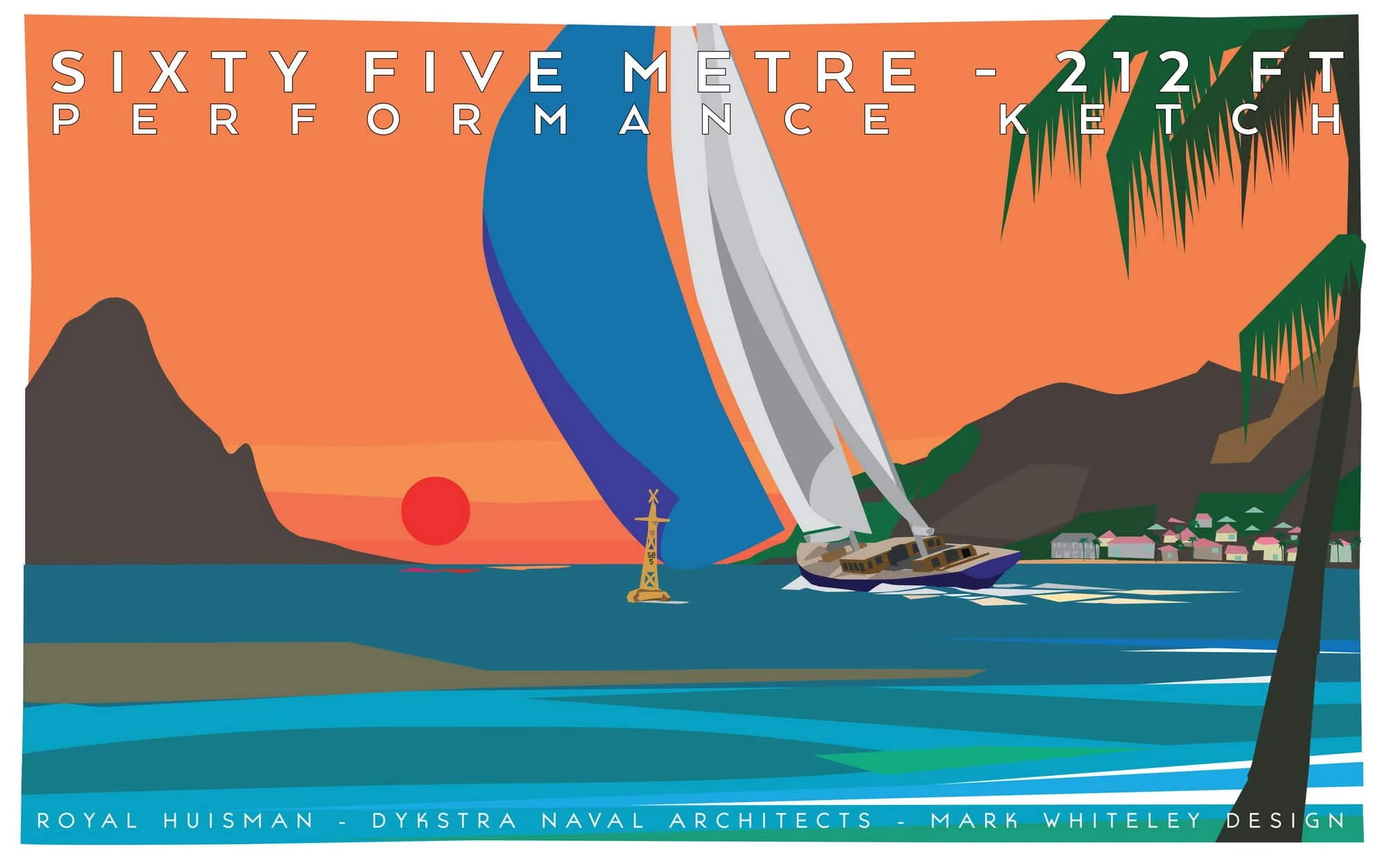 The joint team of Royal Huisman, Dykstra Naval Architects and Mark Whiteley Design is delighted to announce the newbuild agreement for an exciting 65m / 212ft performance ketch rigged sailing yacht.