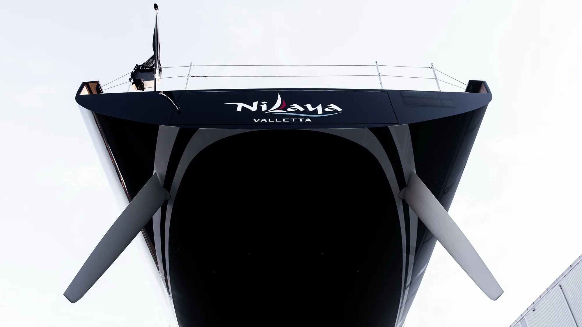 This new Nilaya can rightly be called a development of her predecessor, featuring a similar racy, low profile, straight bow and wide transom. But with more than 8ft extra beam and 43ft more length, the increase in interior volume and on-deck living area is immense.