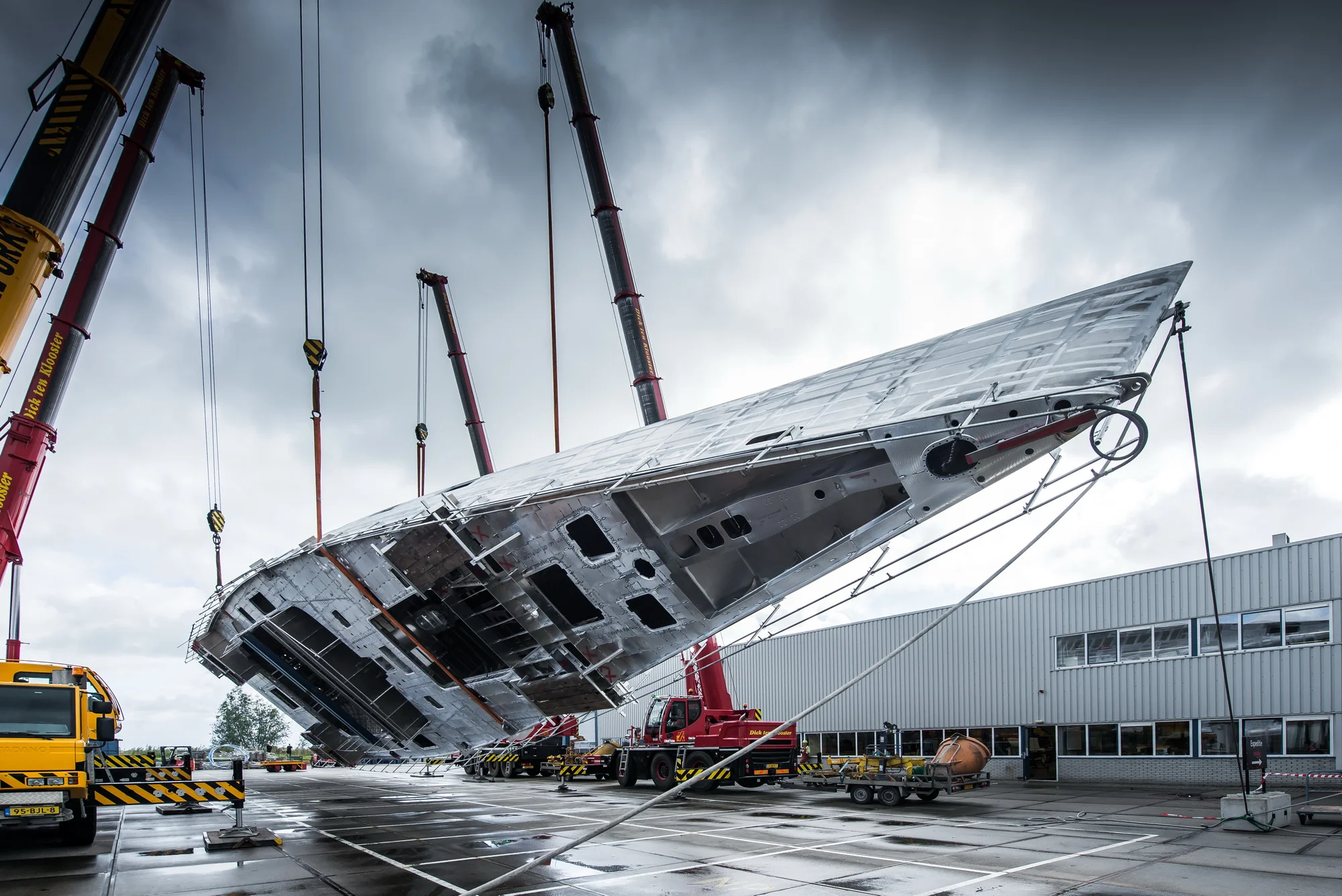 Or maybe they could. Royal Huisman, which was very keen to bid on the project, suggested the answer was not either/or but both. Huisman began adding carbon-fiber elements to its aluminum yachts in 1997. Nilaya’s owner, who knew the builder’s attention to superyacht quality, was intrigued, and directed the three parties to explore a hybrid carbon/aluminum solution.