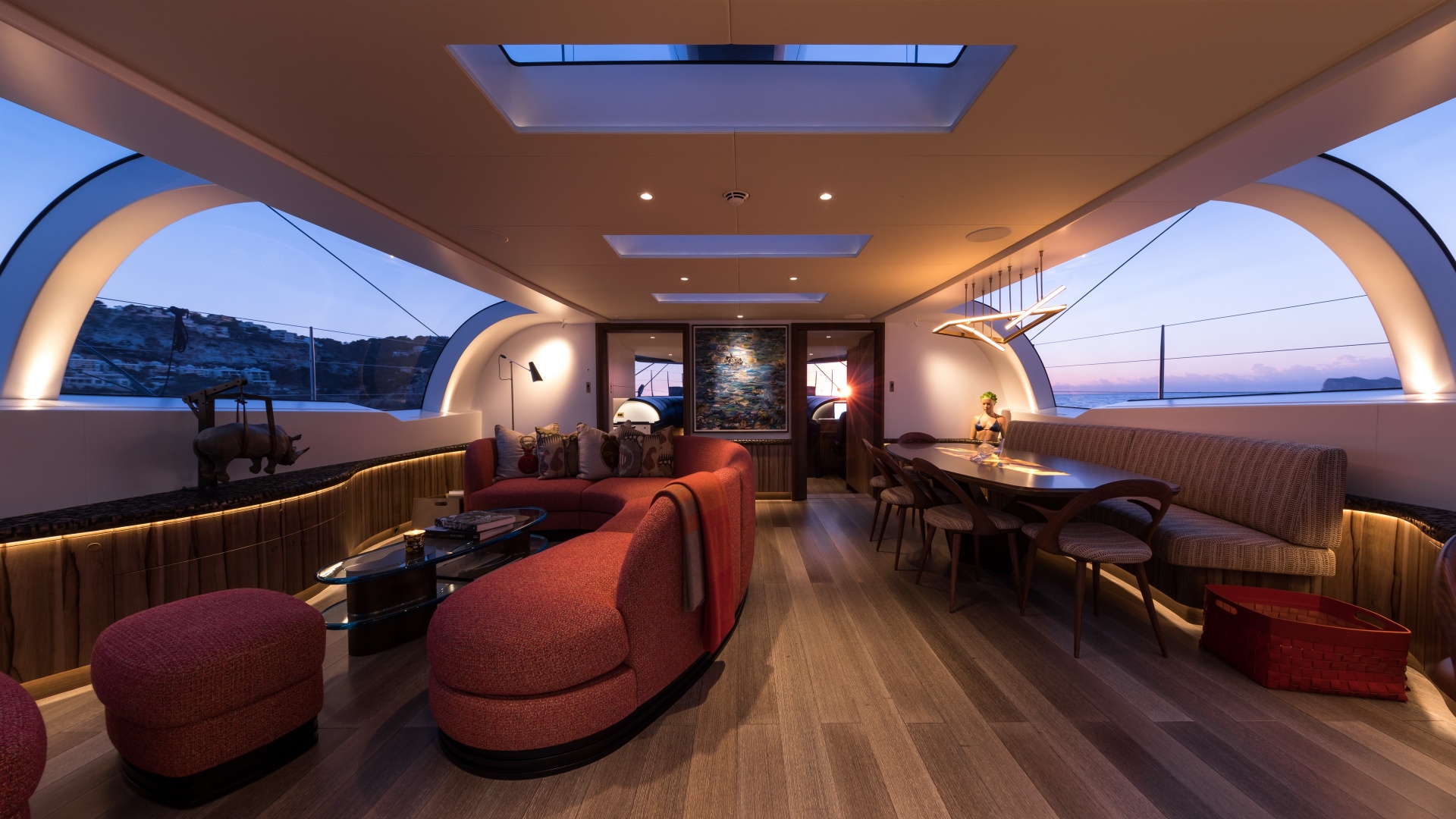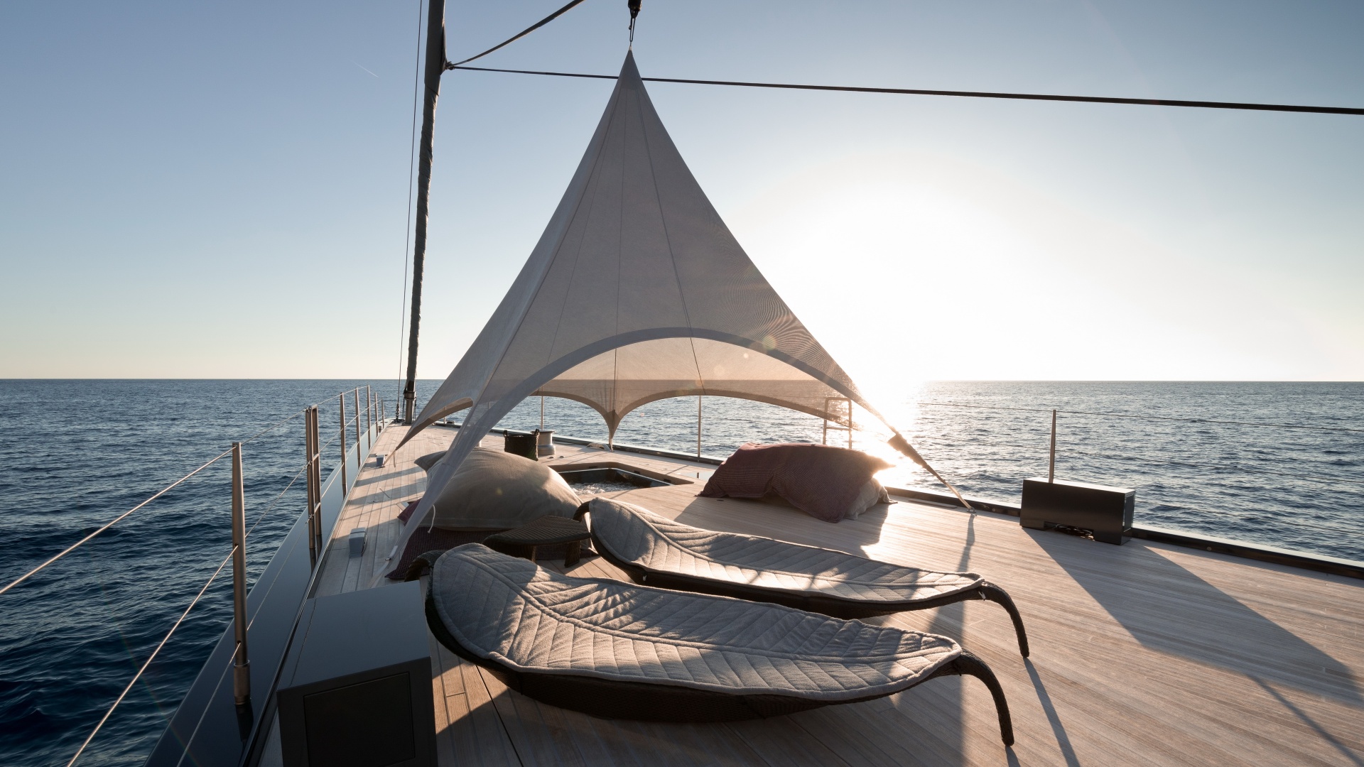The luxuriously appointed guest cockpit offers an intimate outdoor space for reading and relaxation, playing games or simply watching the marine world around you. The deckhouse overhang, together with electrically-powered retractable windbreakers, ensures a sheltered environment in all conditions.