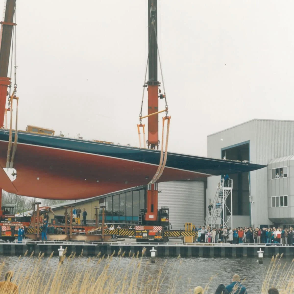 The boats were getting bigger. Because of insufficient draught in the adjacent canal; problems with transportation across the road and limited expansion possibilities, the yard moved premises to Vollenhove after the first hall was built on the present site.