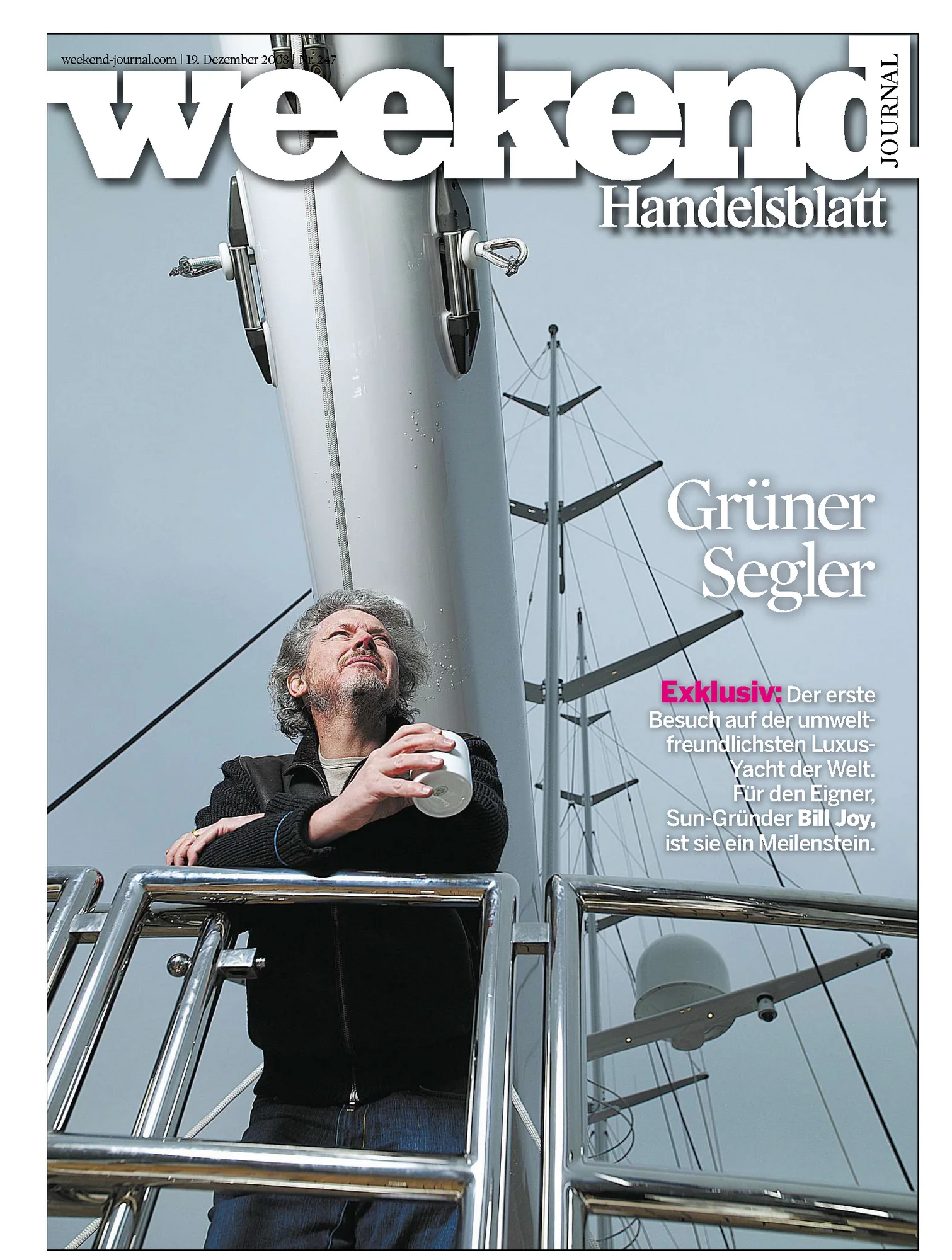 The cover of Handelsblatt Weekend Journal, Germany: ”GREEN SAILOR - Exclusive: The first visit to the most environmentally friendly luxury yacht in the world. For its owner, Sun founder Bill Joy, it is a milestone.” Ethereal has been featured in many publications over the last year and Bill Joy has become quite an ambassador for the shipyard.