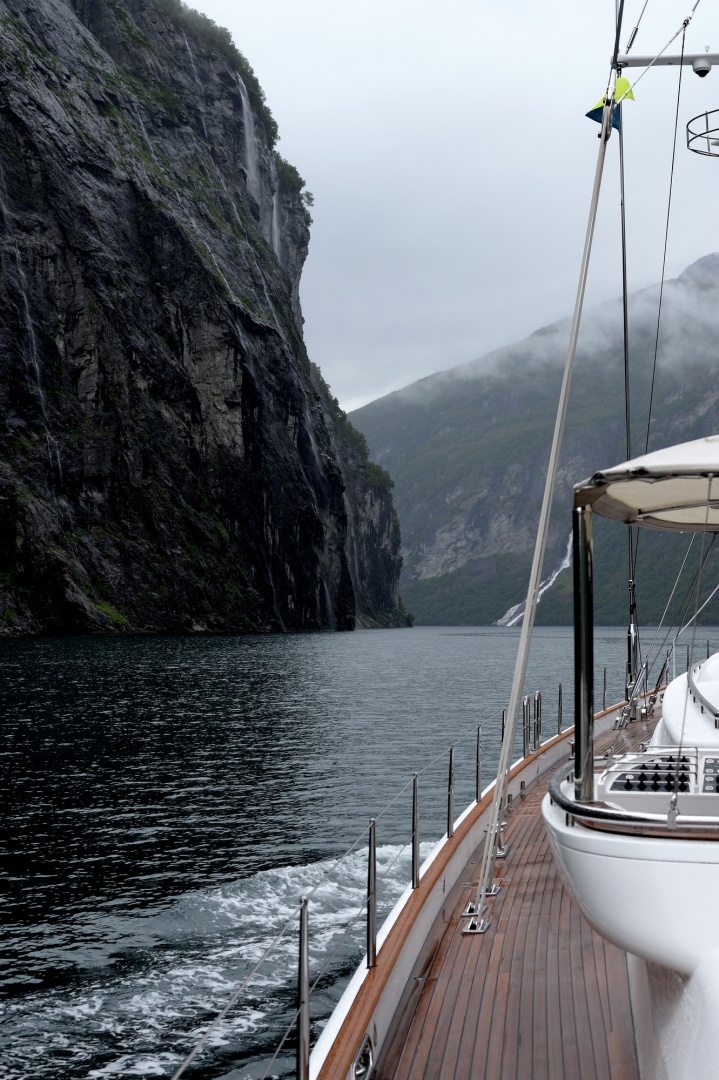 Hyperion, the 47m / 156ft sloop launched by Royal Huisman in 1998 headed north to Scandinavia; the yacht’s team has even produced a dedicated brochure with suggested itineraries for her charter guests extolling the attractions of Norway. Stretching from Tananger and Stavanger south of the city of Bergen, all the way up to Trondheim and beyond, the Norwegian coast has a unique geographical make-up. With its outer fringes of sheltering islands, the dramatic scenery consists of a series of large sounds and deep-water fjords flanked by imposing mountains. Formed millions of years ago by the action of glaciers that cut deep into the landscape, some of the waterways penetrate for miles inland, creating some of the most spectacular natural scenery in the world. Her captain Daniel Rawlins is a keen photographer and captured the images and left of some of the highlights of Hyperion’s summer cruise along the Norwegian coastline.