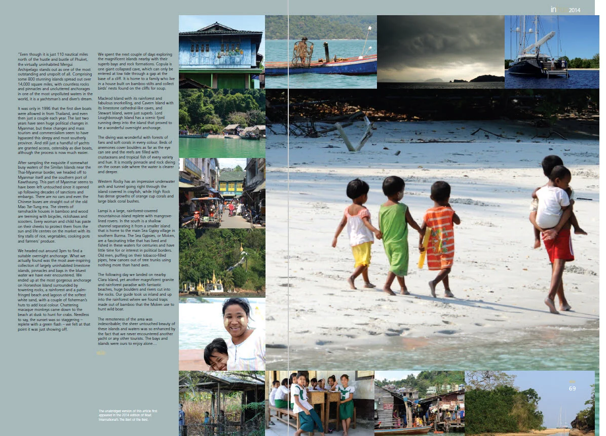“Even though it is just 110 nautical miles north of the hustle and bustle of Phuket, the virtually uninhabited Mergui Archipelago stands out as one of the most outstanding and unspoilt of all. Comprising some 800 stunning islands spread out over 14,000 square miles, with countless rocks and pinnacles and uncluttered anchorages in one of the most unpolluted waters in the world, it is a yachtsman’s and diver’s dream.