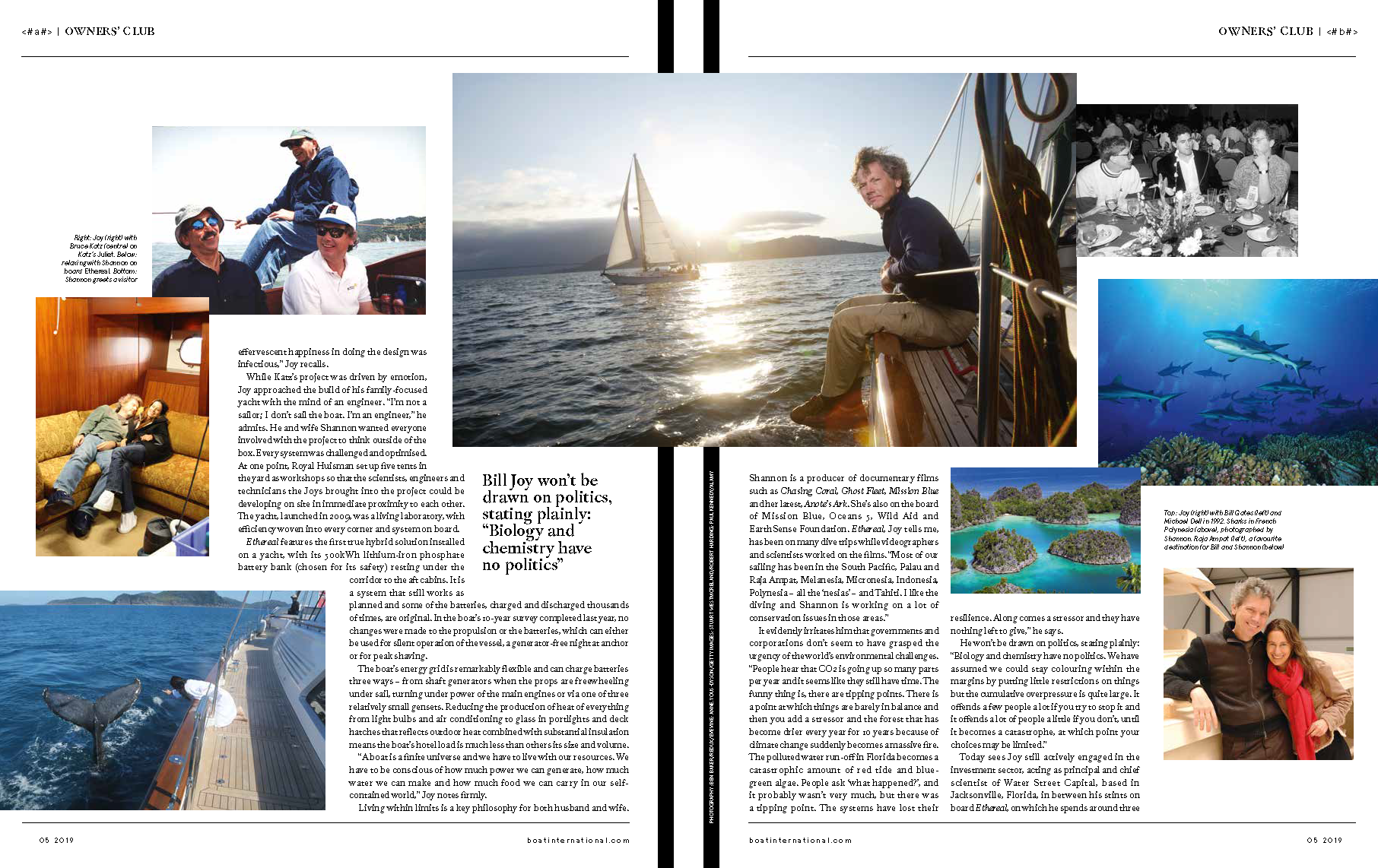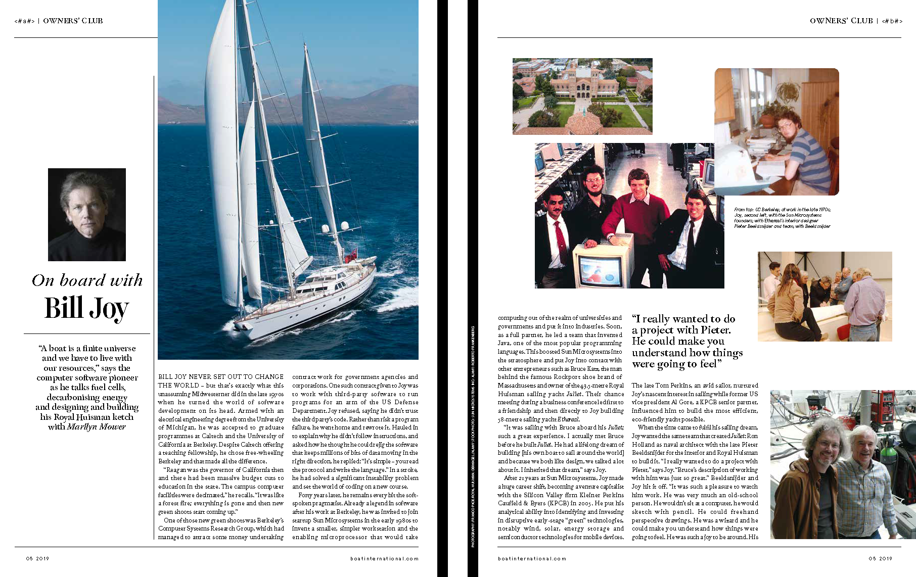 The article “On board with Bill Joy” by Marilyn Mower was published in Boat International’s Owner’s Club, May 2019.