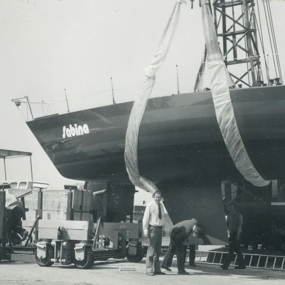 The 12.1 m / 40 ft one-tonner, Sabina VI, was launched from Vollenhove in 1981 and, while the Huisman yard embarked on its new journey into luxury cruising yachts, Hermann Noack concentrated his bearings on even greater racing success, which he continued to achieve with the 1983 Admiral’s Cup and well beyond.