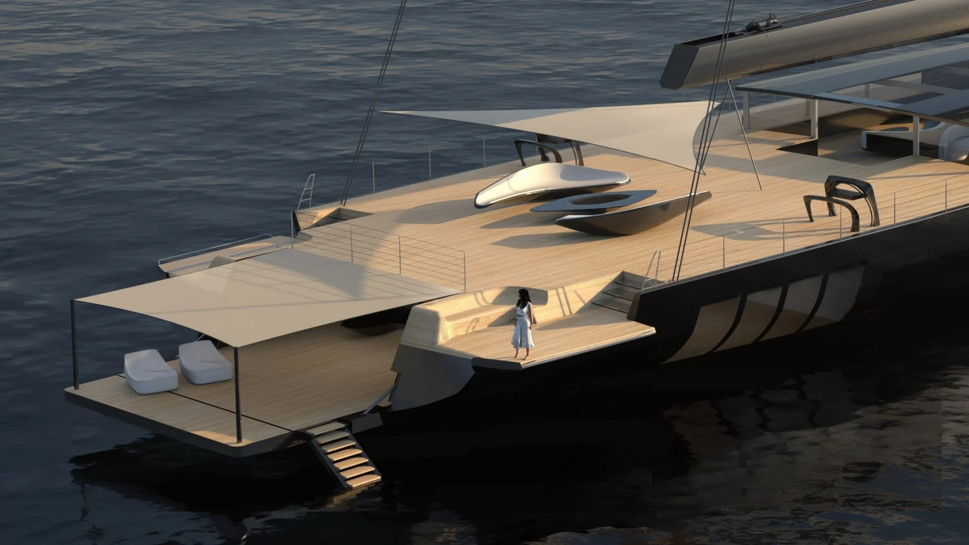 Fully aft, the transom and a section of deck swing silently out and over to reveal an expansive 50m2 / 540 ft2 swim platform, gym and social area with direct access from the Owners’ beach club.