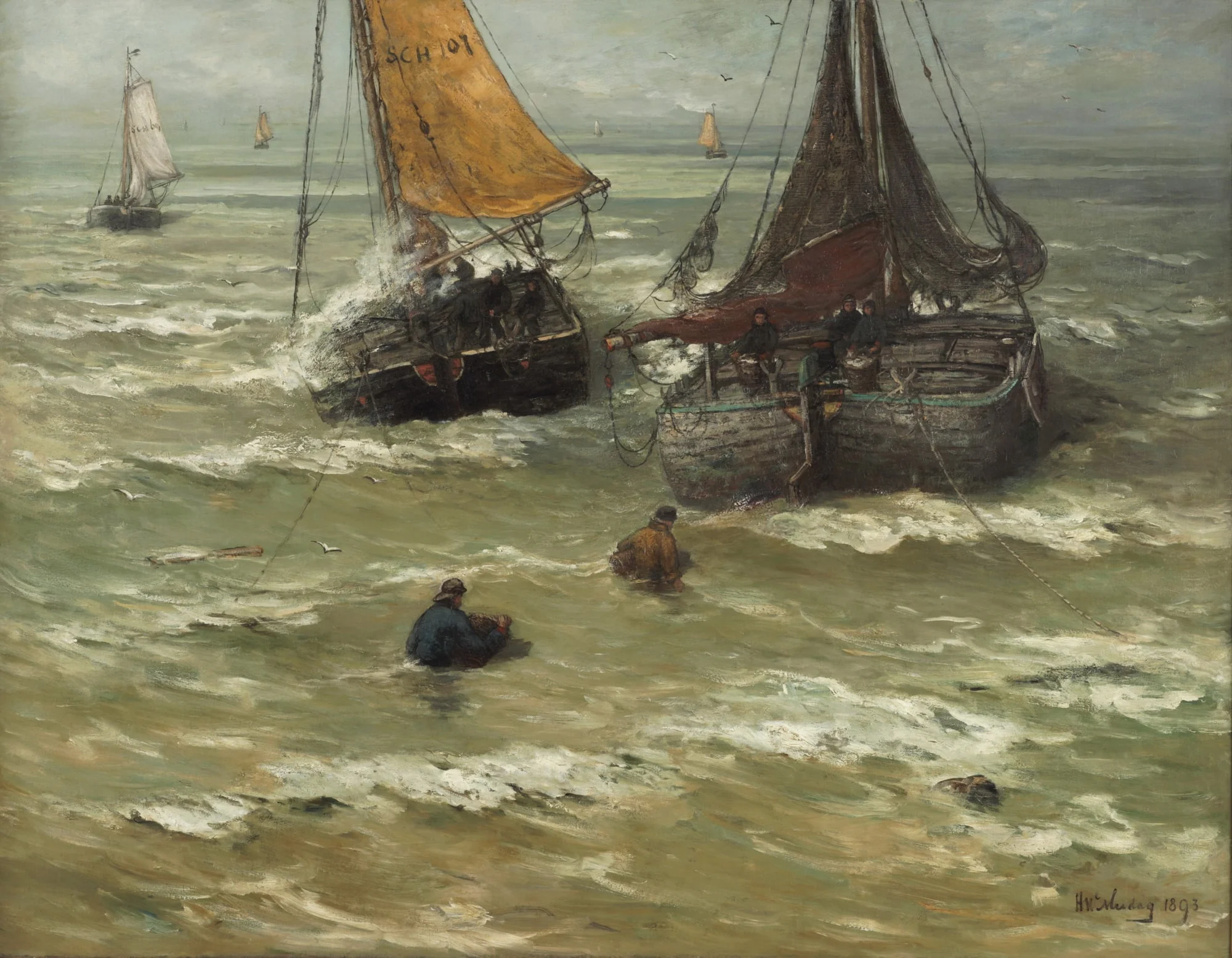Hendrik Willem Mesdag (1831 – 1915) was encouraged by his father, an amateur painter, to become an artist. He studied in Brussels and in 1868 moved to The Hague to paint the sea. In 1870 he exhibited at the Paris Salon and won the gold medal for The Breakers of the North Sea. Mesdag was also a prolific art collector and donated his collection to the Dutch state. Since 1990 the Mesdag Collection has been part of the Van Gogh Museum in Amsterdam.