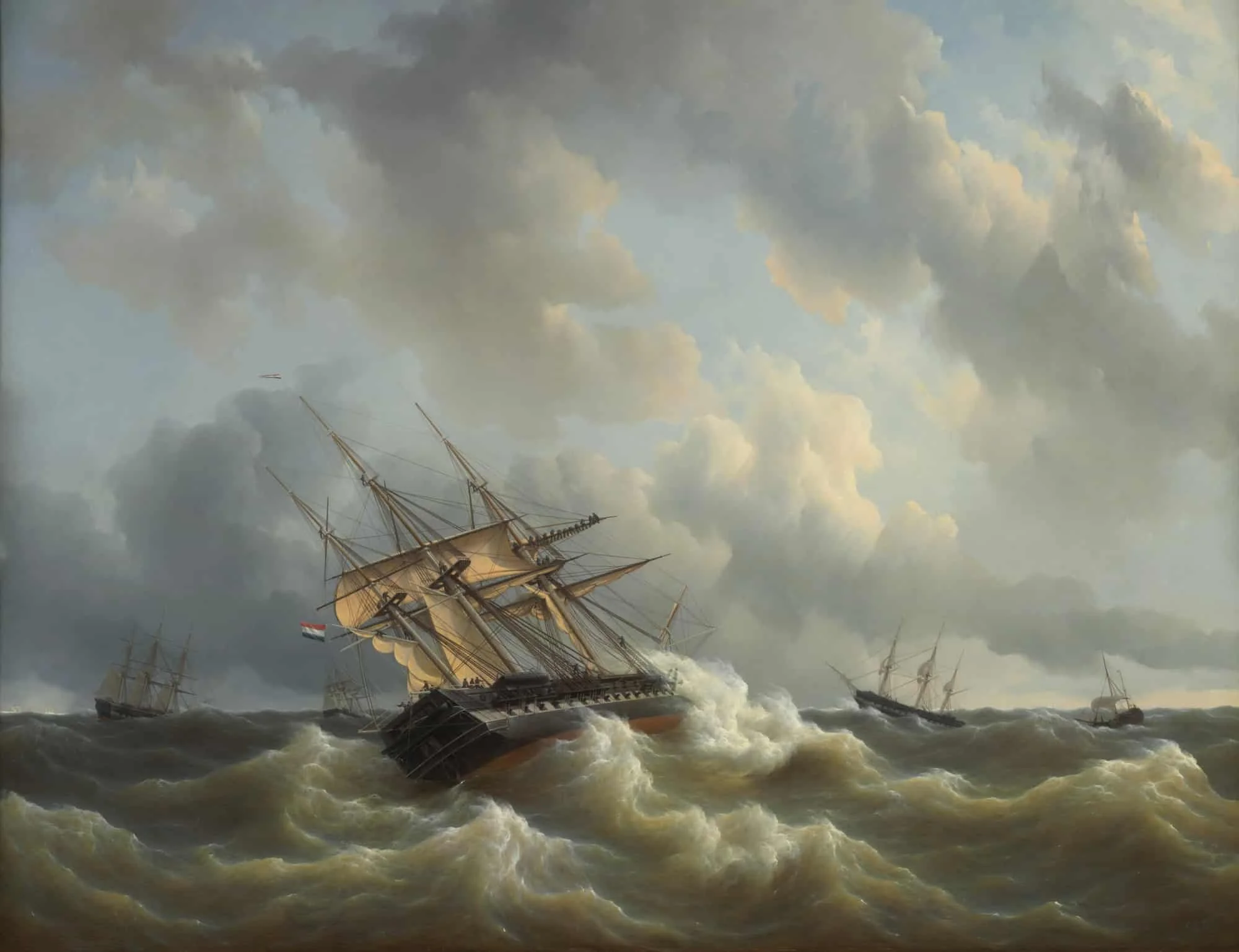 The naval fleet under the command of Prince Hendrik of the Netherlands in bad weather in the Channel, October 1843 – by Petrus Johannes Schotel